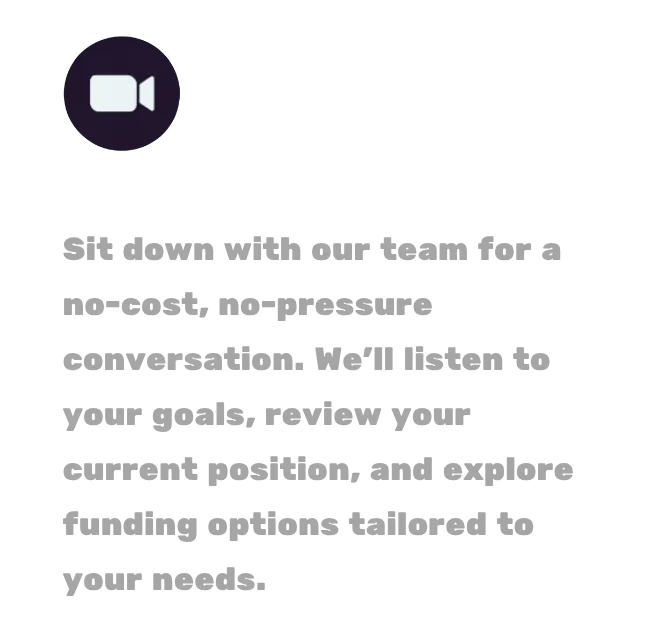 We know every journey is different. That’s why our funding solutions are designed to meet you where you are and help you move forward with confidence. No stress. Just what you need, when you need it.